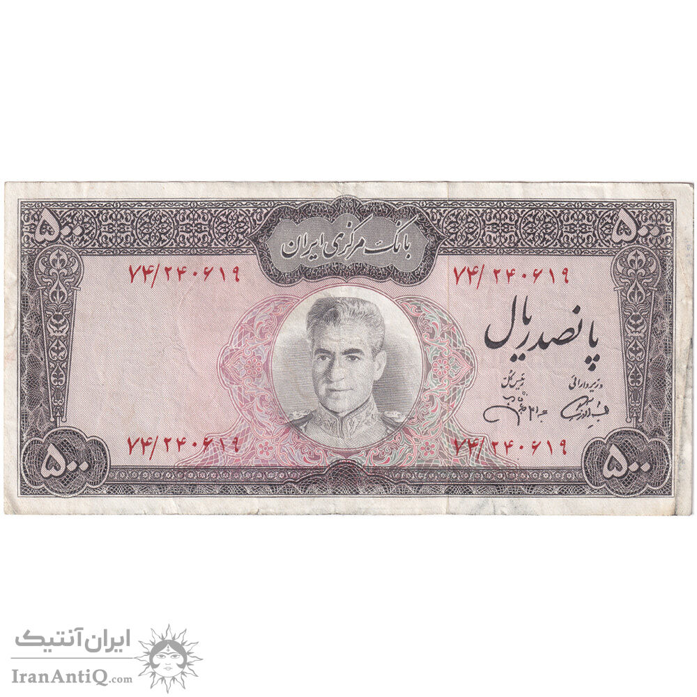 mohammad reza shah 500 rials (amuzegar - jahanshahi) iran banknote - EF40