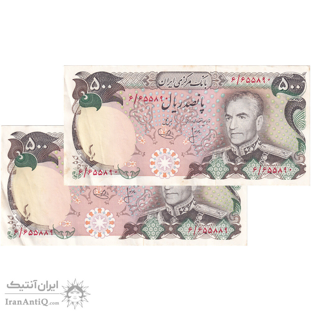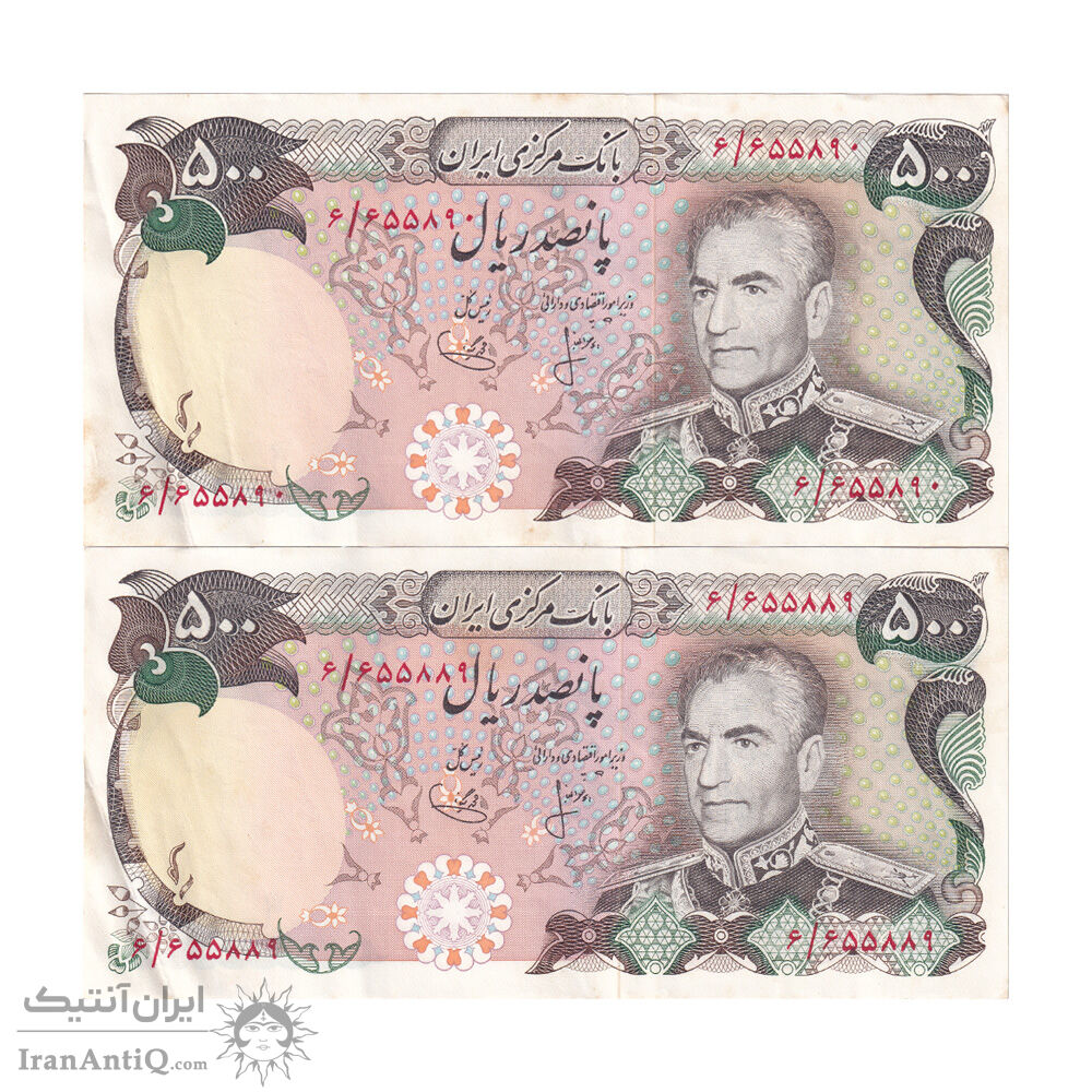 اسکناس 500 ریال (انصاری - یگانه) - جفت - AU53 - محمد رضا شاه