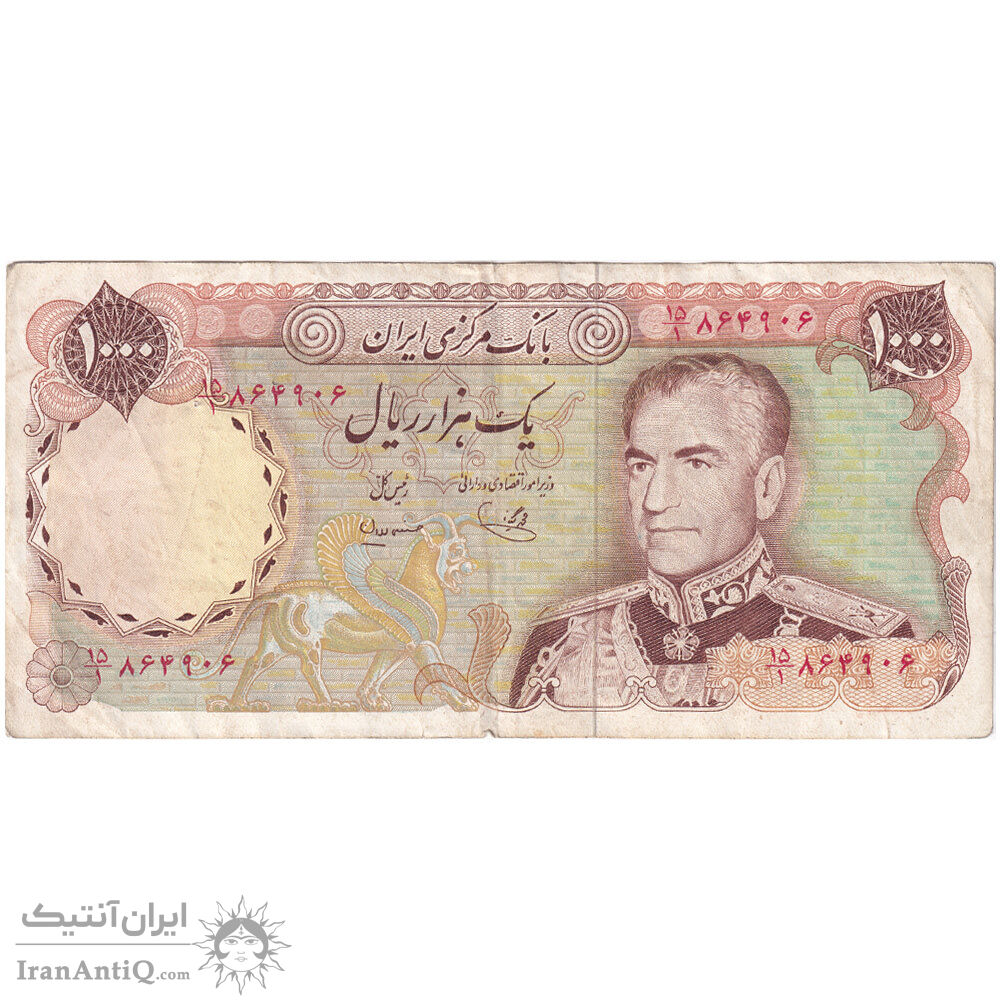 mohammad reza shah 1000 rials (yegane - mehran) iran banknote - EF40