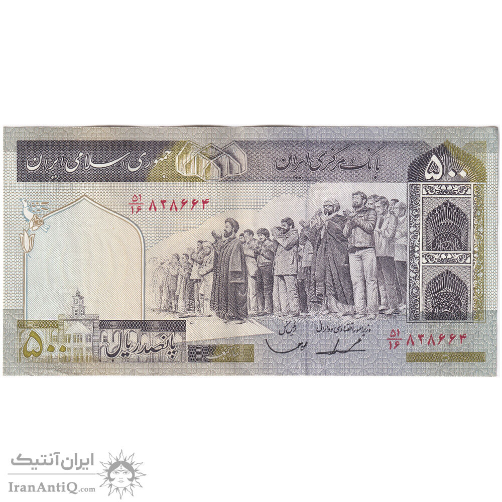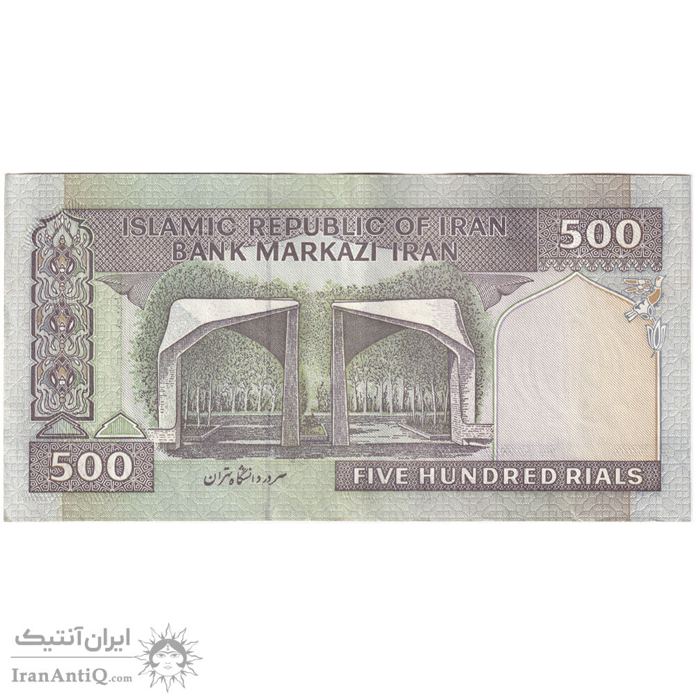 اسکناس 500 ریال (ایروانی - قاسمی) فیلیگران الله - شماره کوچک - تک - EF45 - جمهوری اسلامی
