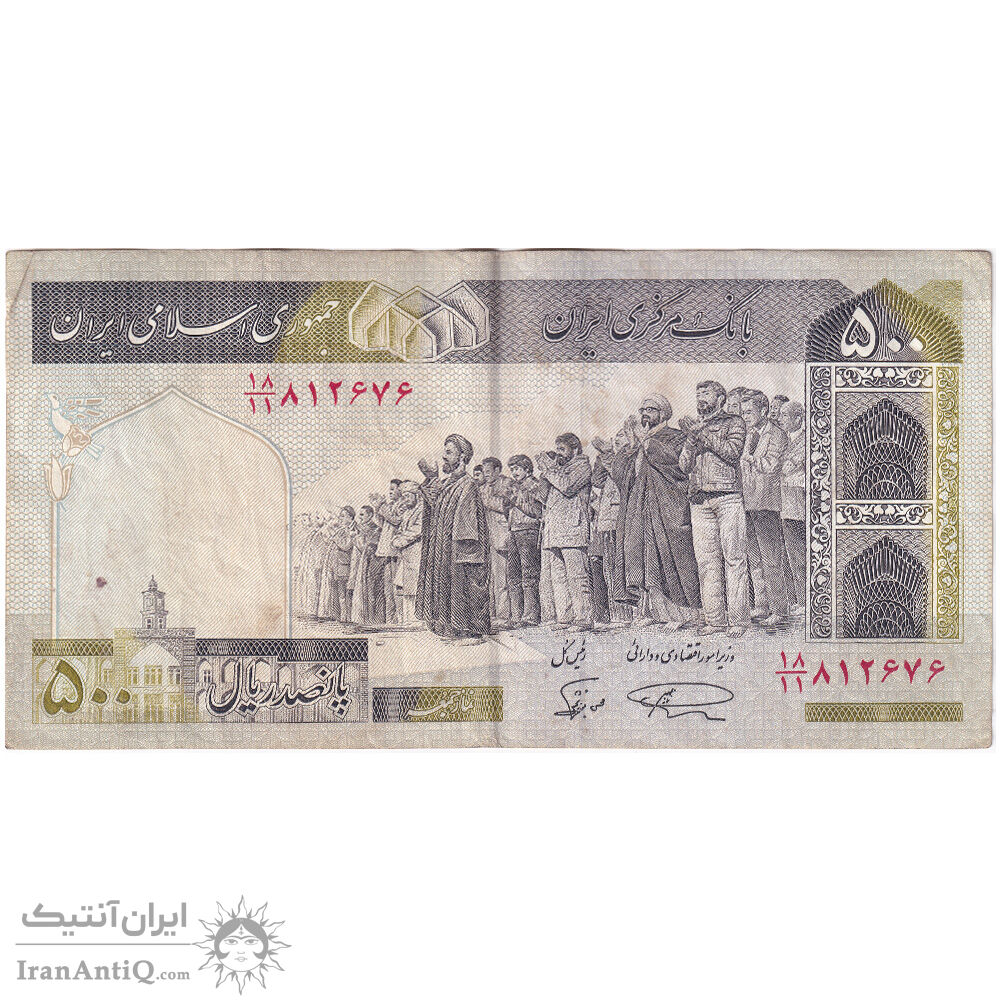 اسکناس 500 ریال (نمازی - نوربخش) فیلیگران الله - نخ جمهوری - تک - EF40 - جمهوری اسلامی