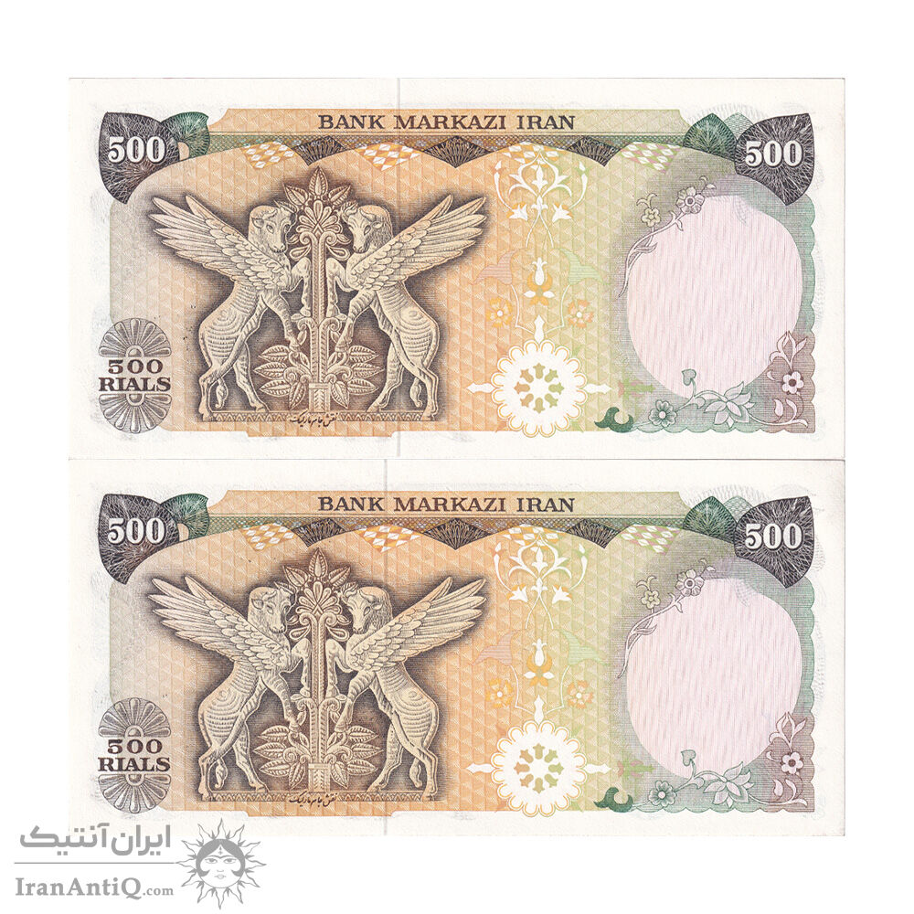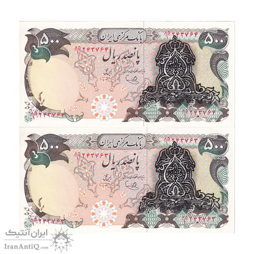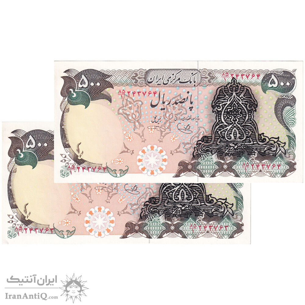 اسکناس 500 ریال سورشارژی (یگانه - خوش کیش) بدون مهر - جفت - UNC63 - جمهوری اسلامی