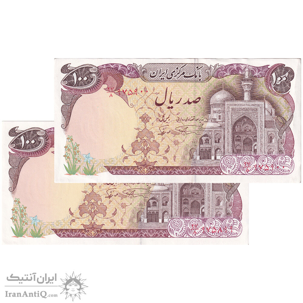 اسکناس 100 ریال (نمازی - نوربخش) شماره نازک - جفت - AU55 - جمهوری اسلامی