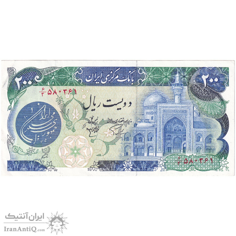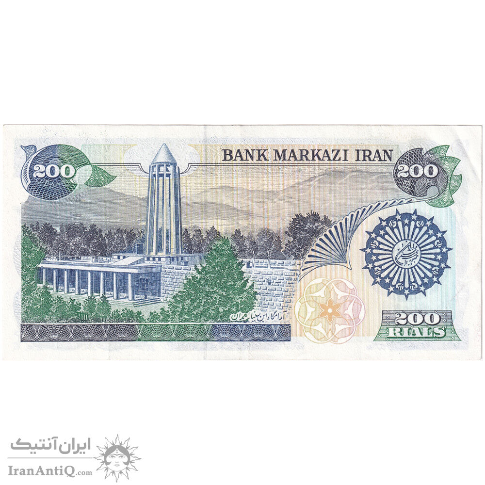 اسکناس 200 ریال (اردلان - مولوی) بدون فیلیگران - تک - AU55 - جمهوری اسلامی