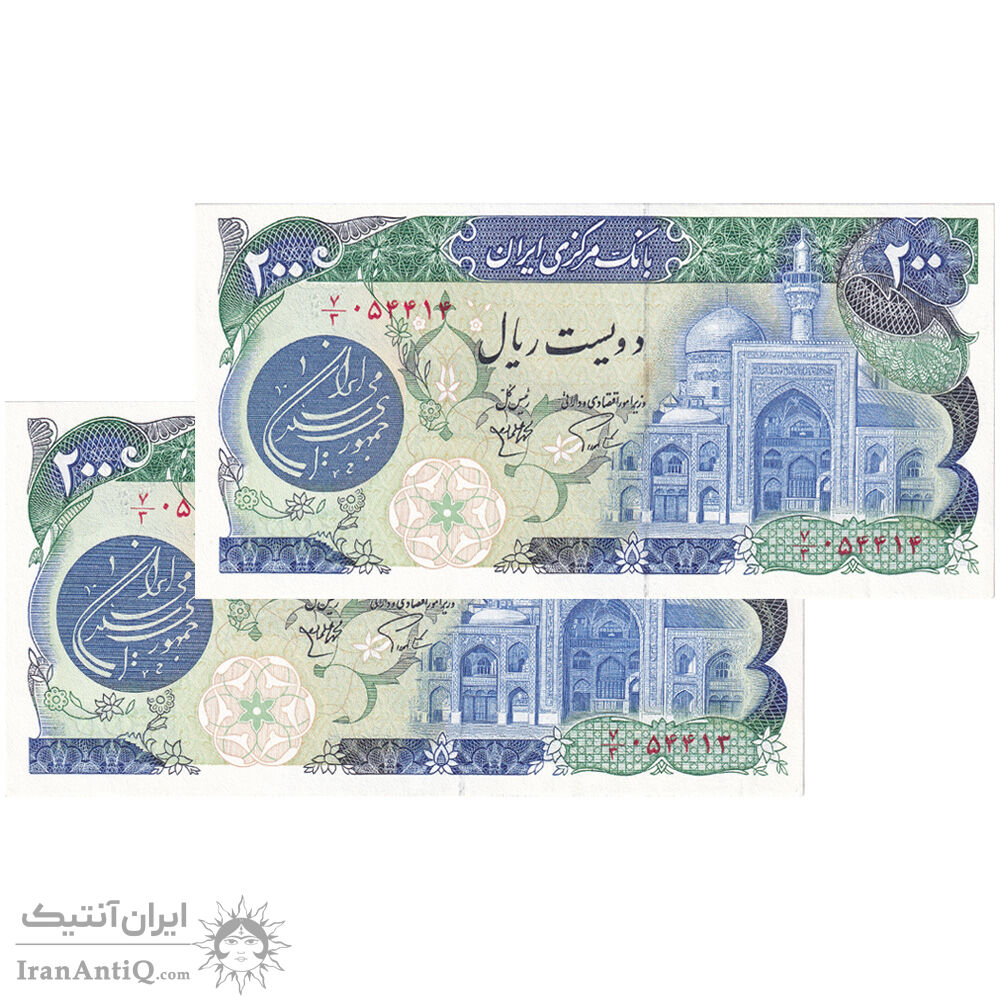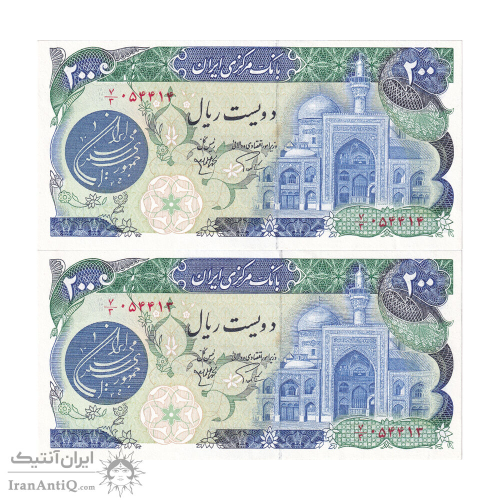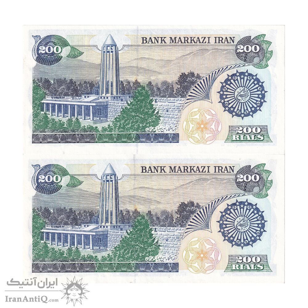 اسکناس 200 ریال (اردلان - مولوی) بدون فیلیگران - جفت - UNC61 - جمهوری اسلامی
