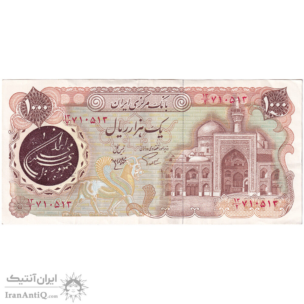 اسکناس 1000 ریال (اردلان - مولوی) سورشارژ قهوه ای - تک - AU50 - جمهوری اسلامی