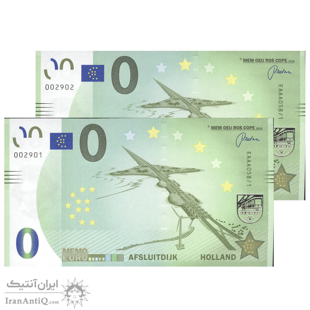 اسکناس 0 یورو بدون تاریخ (2020) - سد دریابند آفسلایت‌دیک - جفت - UNC65 - هلند