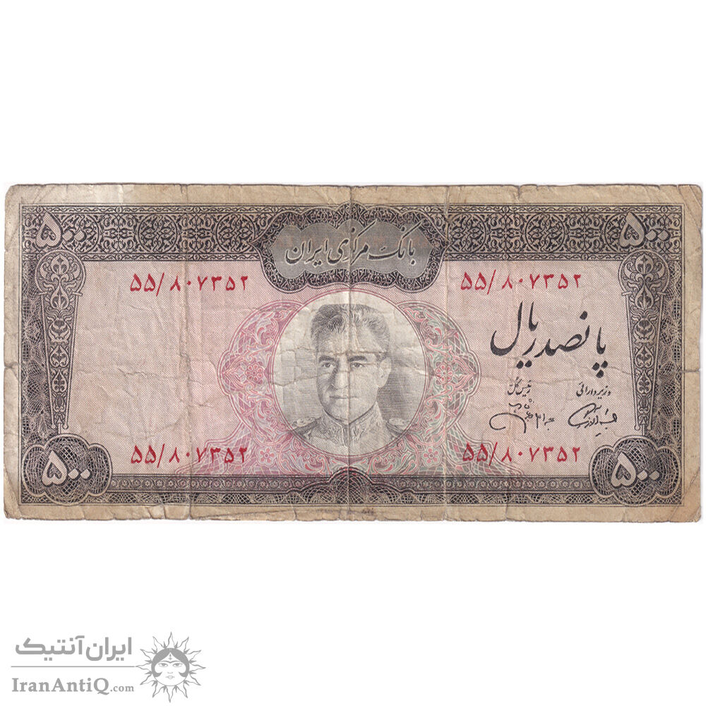 mohammad reza shah 500 rials (amuzegar - jahanshahi) iran banknote - F15