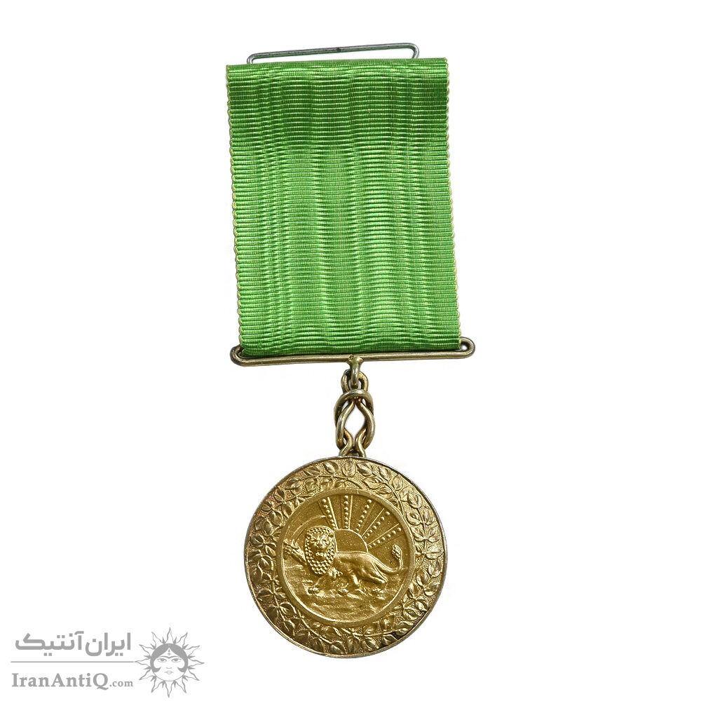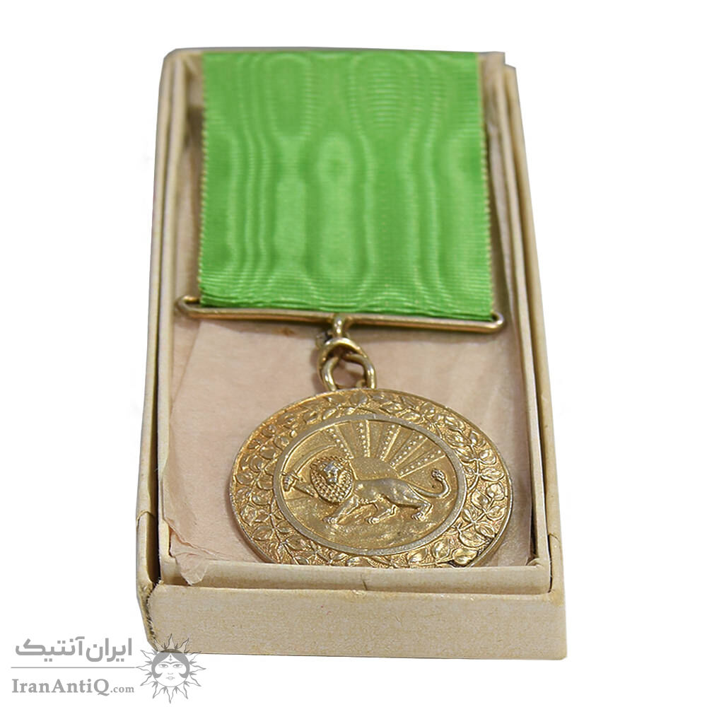 مدال نقره بپاداش خدمت - طلایی - با جعبه - AU50 - رضا شاه
