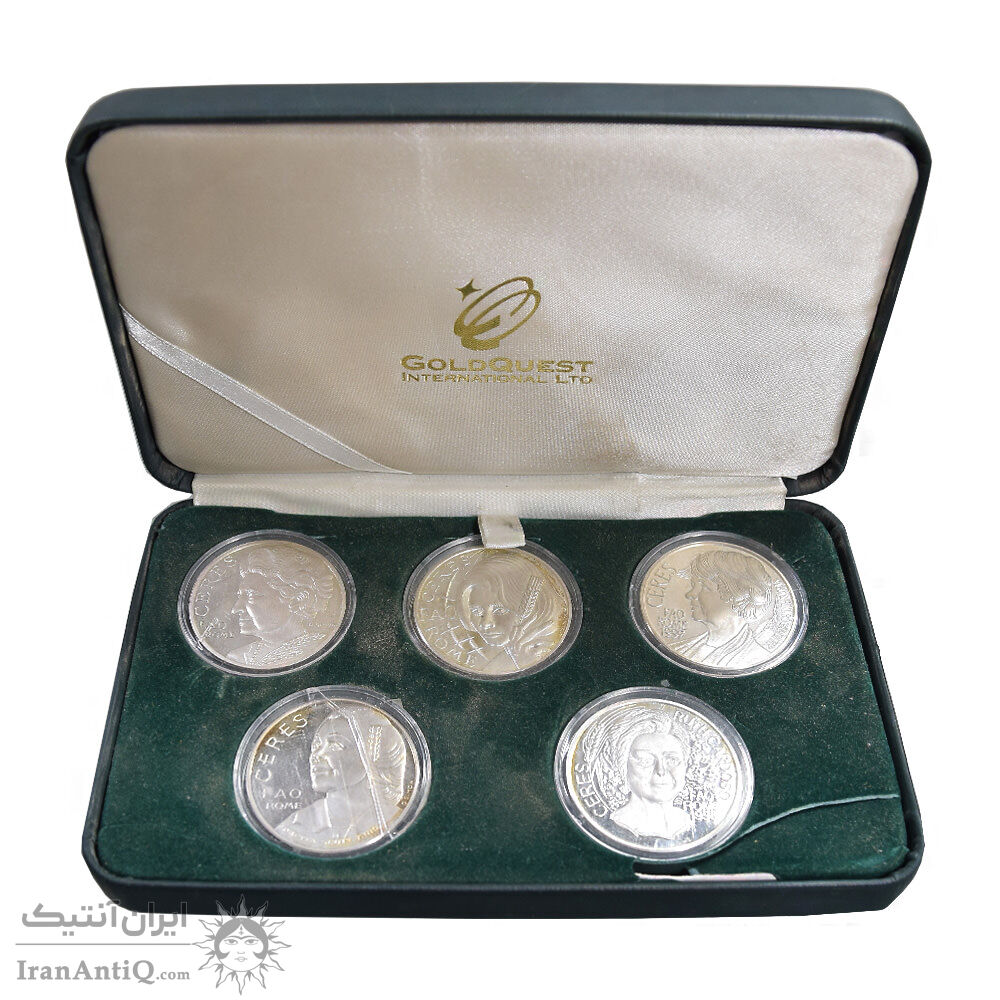 توجه: این محصول شامل 5 مدال یادبود نقره و بدون شناسنامه می باشد، جعبه و کپسول آن شکستگی دارد.