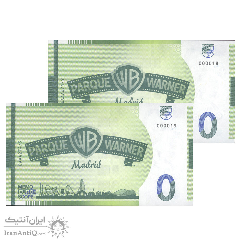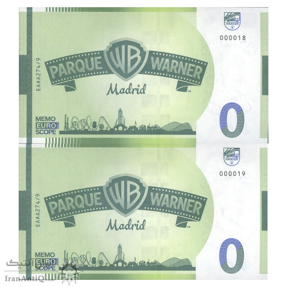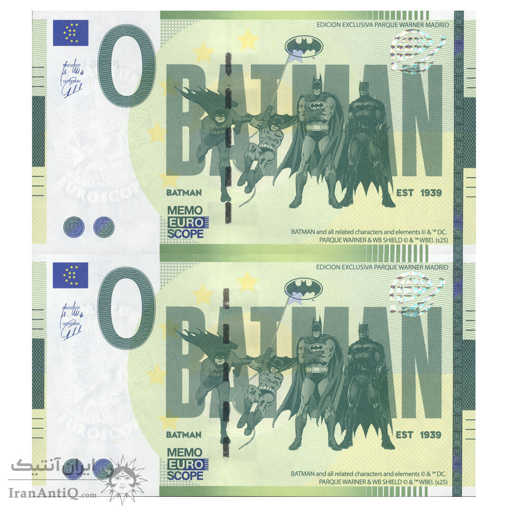 اسکناس 0 یورو بدون تاریخ - پارک وارنر مادرید-بتمن - جفت - UNC64 - اسپانیا