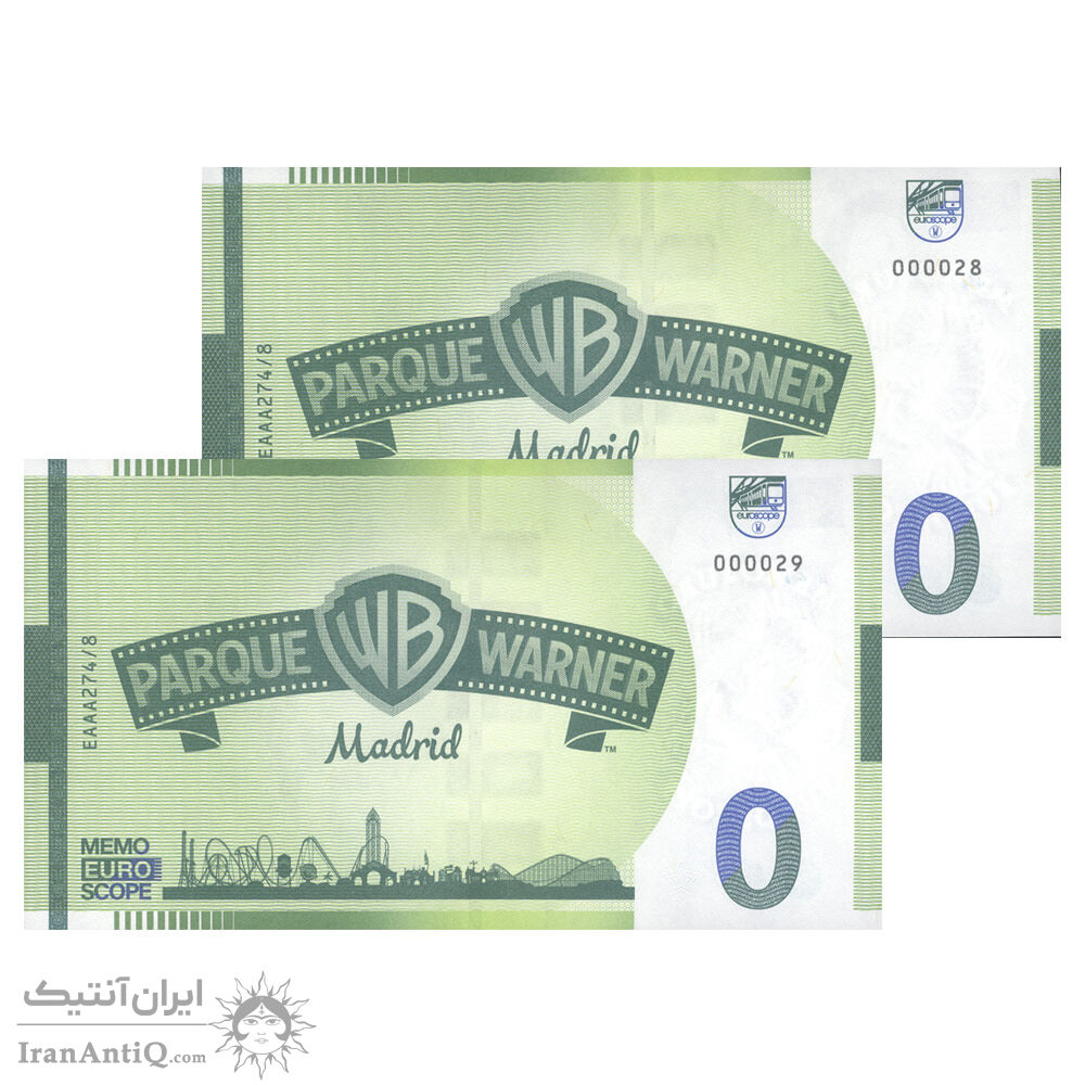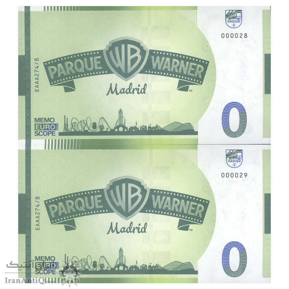 اسکناس 0 یورو بدون تاریخ - پارک وارنر مادرید-دری - جفت - UNC64 - اسپانیا