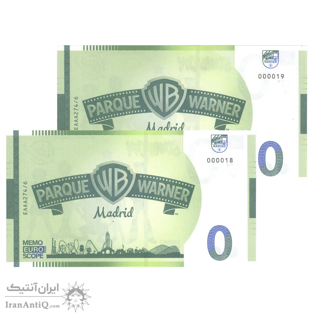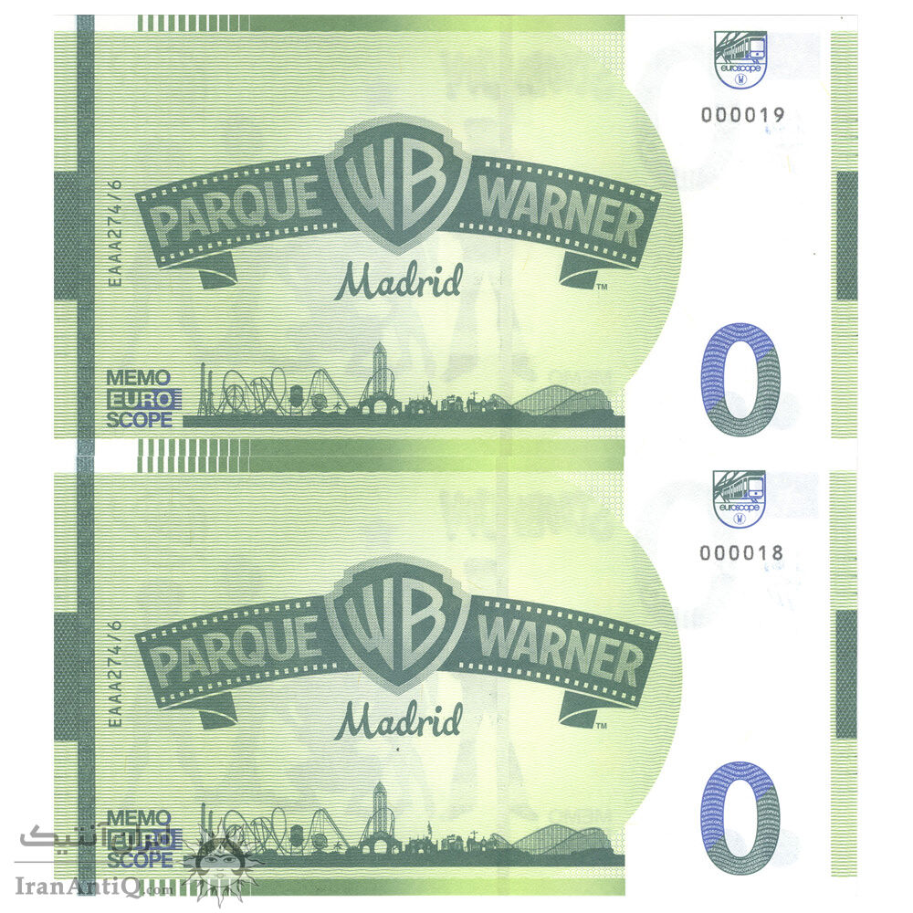 اسکناس 0 یورو بدون تاریخ - پارک وارنر مادرید-اسکوبی دو - جفت - UNC65 - اسپانیا