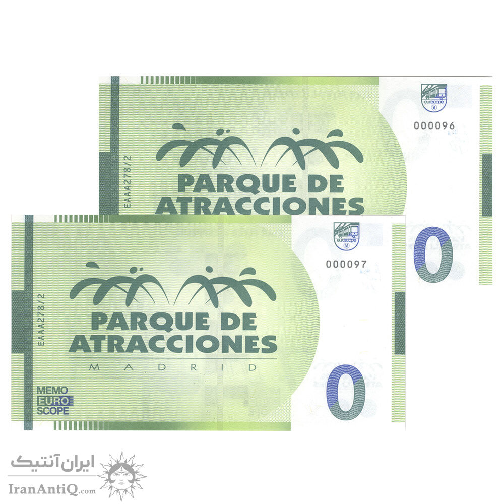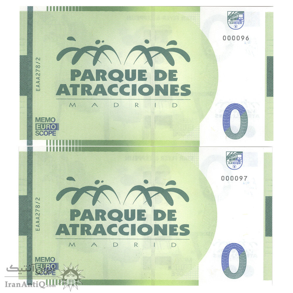 اسکناس 0 یورو بدون تاریخ - شهربازی مادرید-استار فلایر و زیپ لاین - جفت - UNC65 - اسپانیا