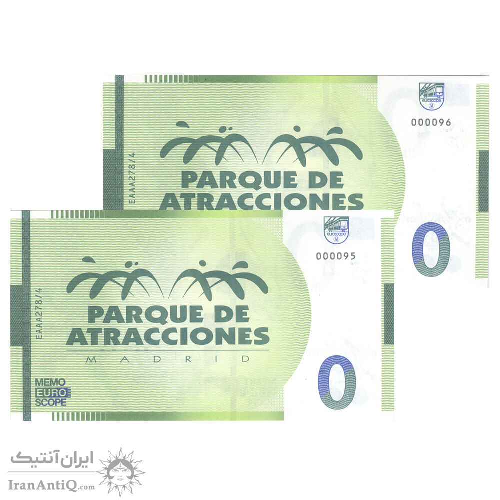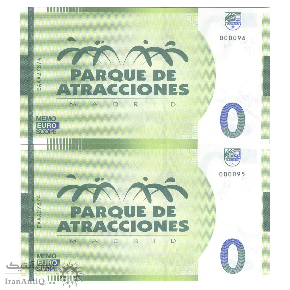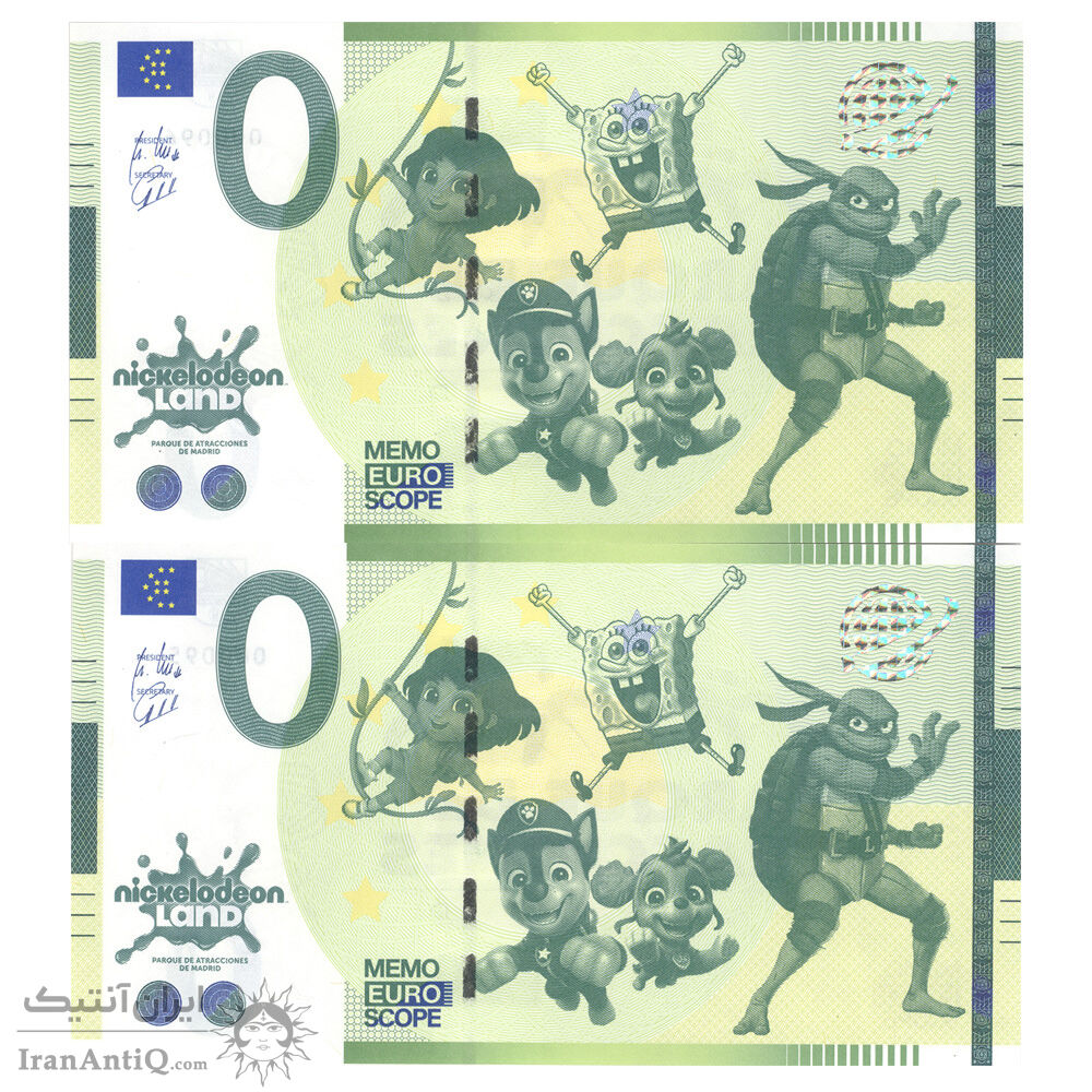 اسکناس 0 یورو بدون تاریخ - شهربازی مادرید-باب اسفنجی - جفت - UNC65 - اسپانیا