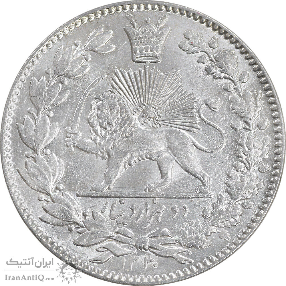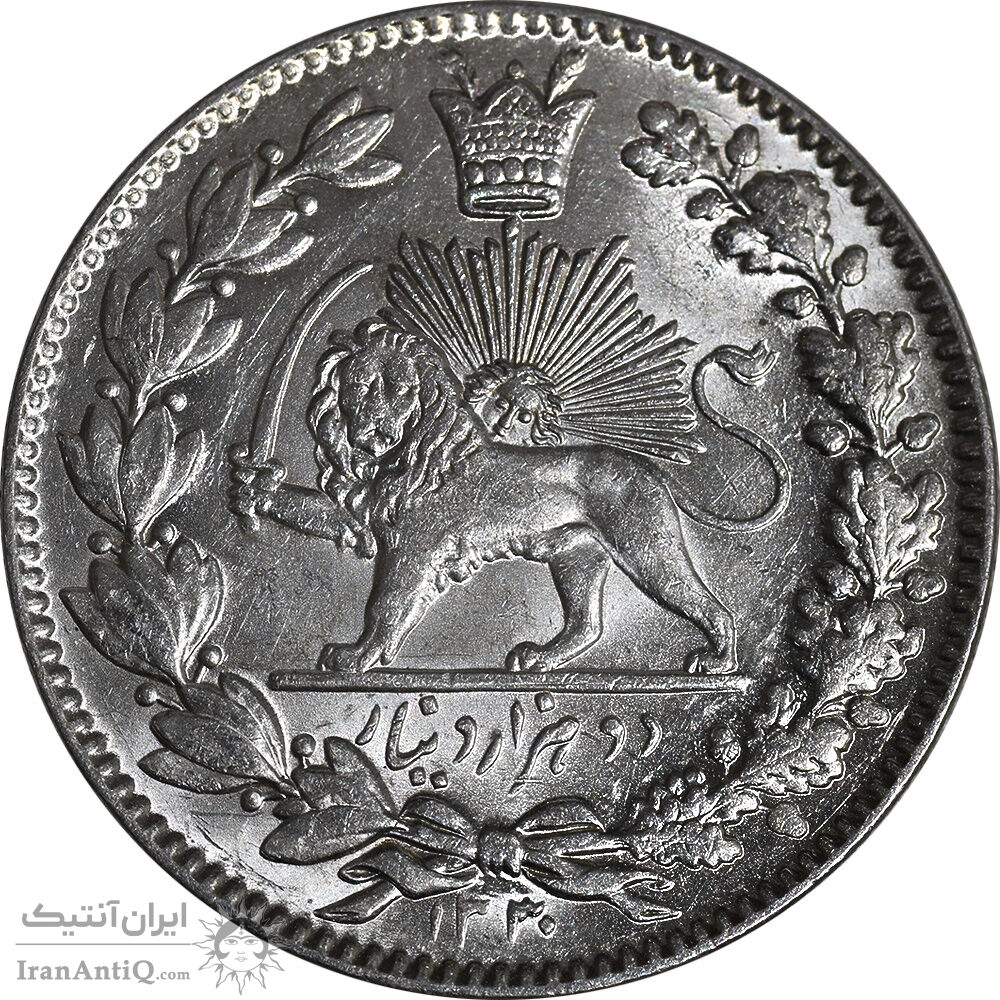 سکه 2000 دینار 1330 خطی - شیر متفاوت - MS64 - احمد شاه