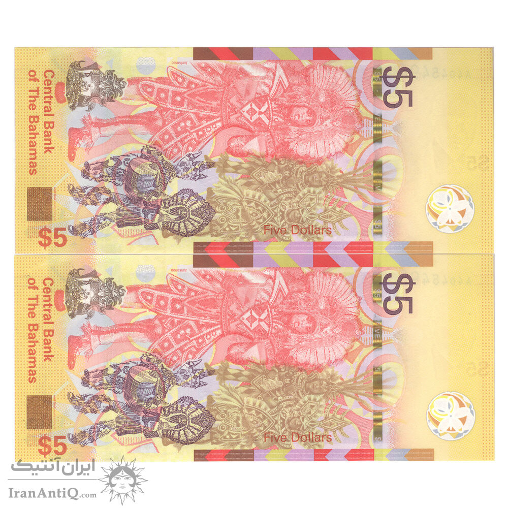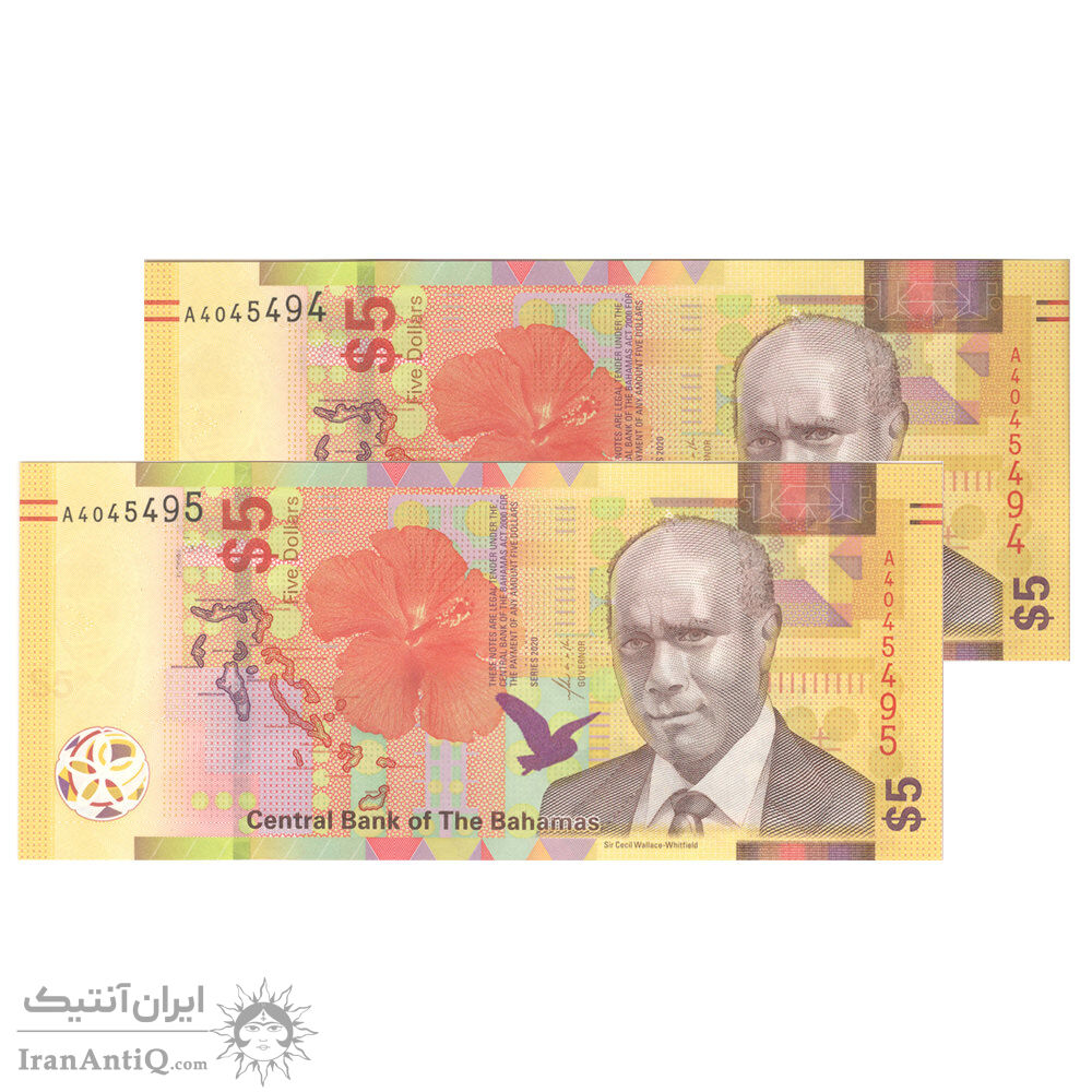 اسکناس 5 دلار 2020 الیزابت دوم - جفت - UNC63 - باهاما