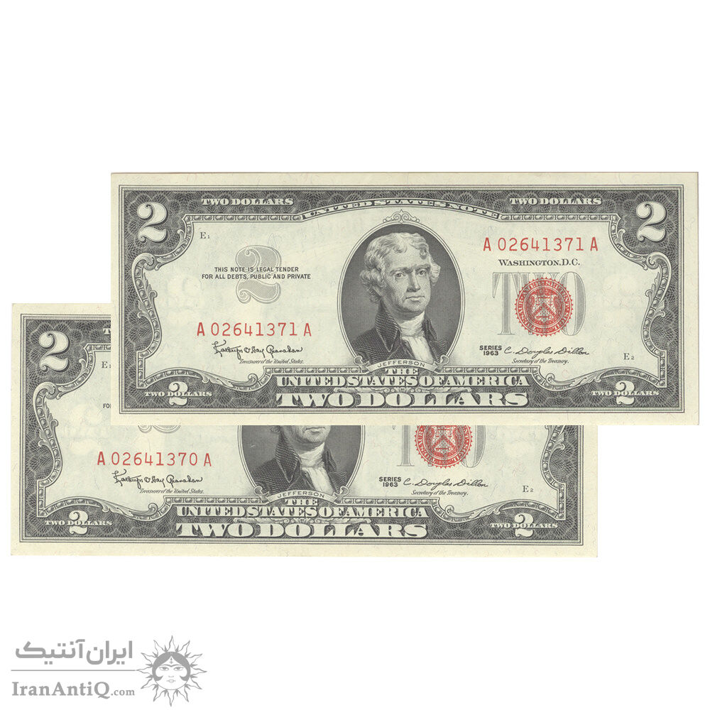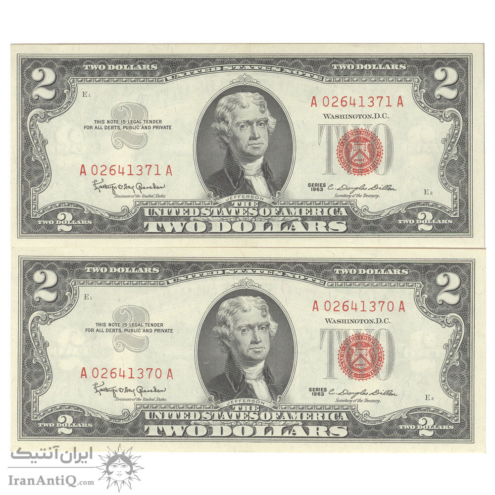 اسکناس 2 دلار 1963 جمهوری فدرال - مهر قرمز - جفت - UNC61 - آمریکا
