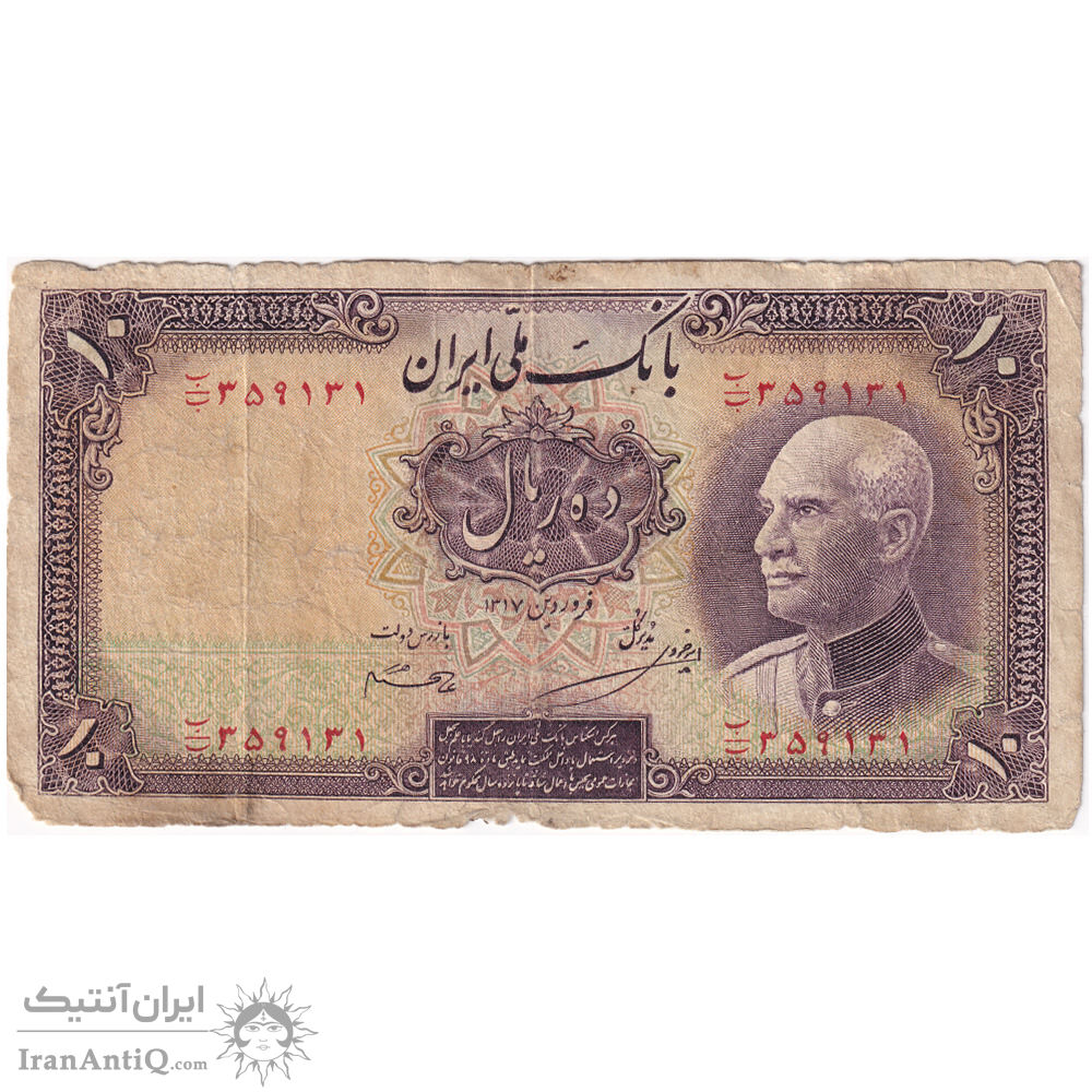 اسکناس 10 ریال پشت فارسی - بدون مهر - تک - VG - رضا شاه