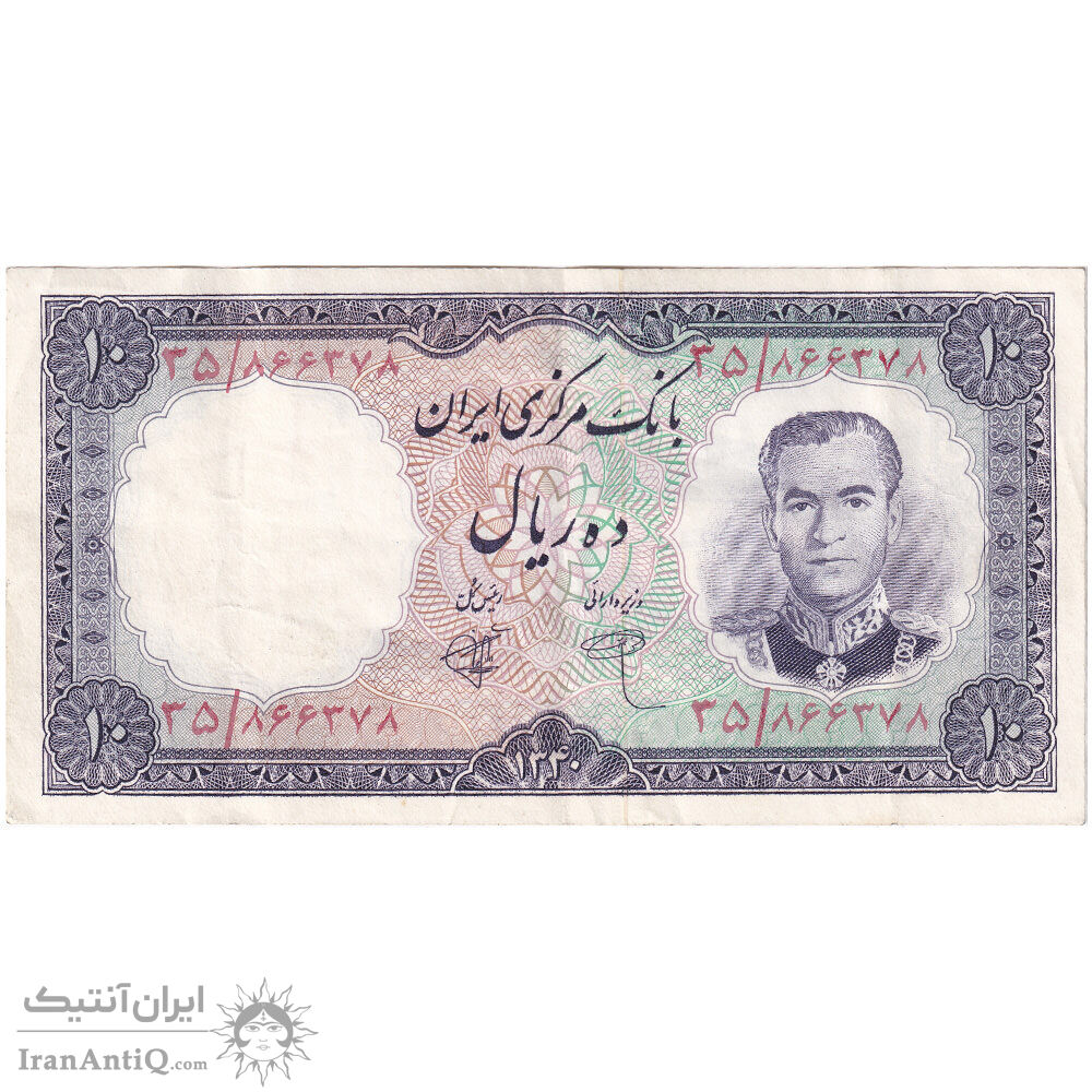اسکناس 10 ریال 1340 - تک - AU50 - محمد رضا شاه