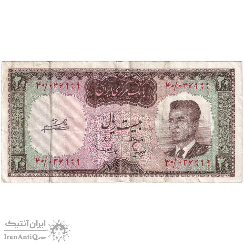 mohammad reza shah 20 rials (hovida - samiee) iran banknote - EF40
