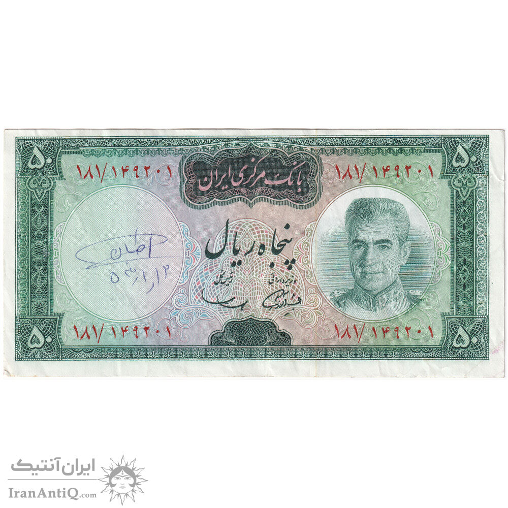 اسکناس 50 ریال (آموزگار - سمیعی) ارور کادر - تک - EF45 - محمد رضا شاه