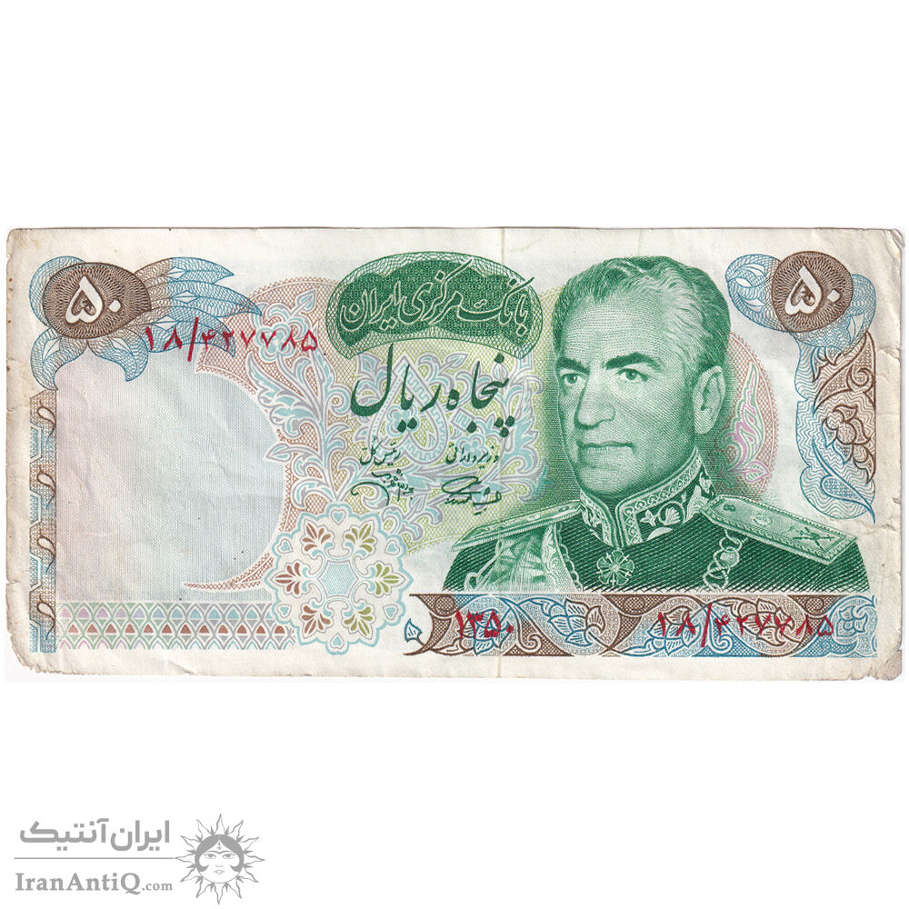 اسکناس 50 ریال 1350 (آموزگار - جهانشاهی) - تک - EF40 - محمد رضا شاه