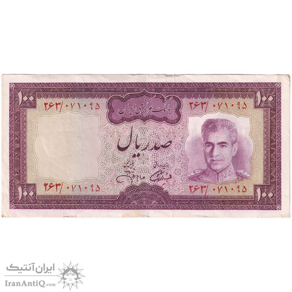 اسکناس 100 ریال (آموزگار - جهانشاهی) - تک - EF45 - محمد رضا شاه