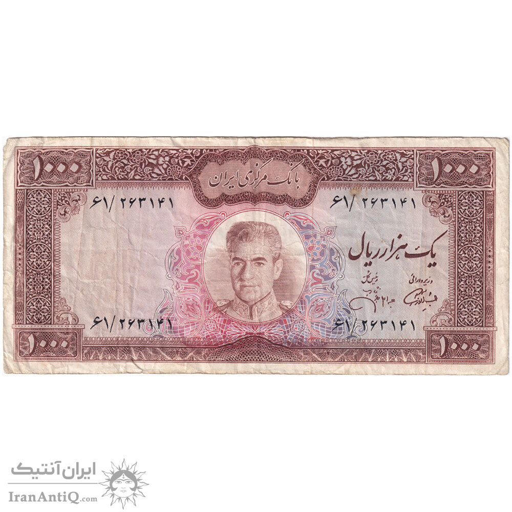 mohammad reza shah 1000 rials (amuzegar - jahanshai) iran banknote - VF35