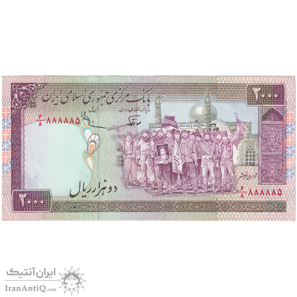 اسکناس 2000 ریال (نوربخش - عادلی) امضاء بزرگ - شماره بزرگ - شماره نیمه رند - تک - UNC62 - جمهوری اسلامی