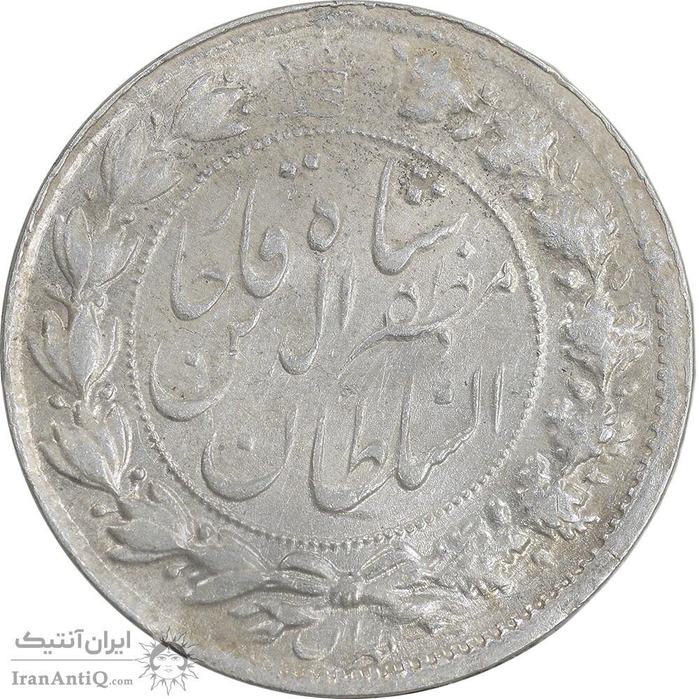 سکه 2 قران 1321 - 13201 ارور تاریخ - AU58 - مظفرالدین شاه
