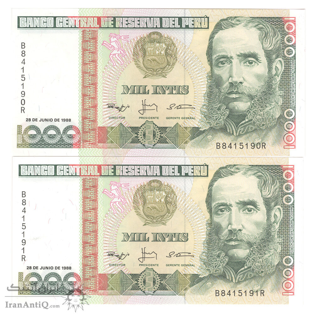اسکناس 1000 اینتیس 1988 جمهوری - جفت - UNC64 - پرو