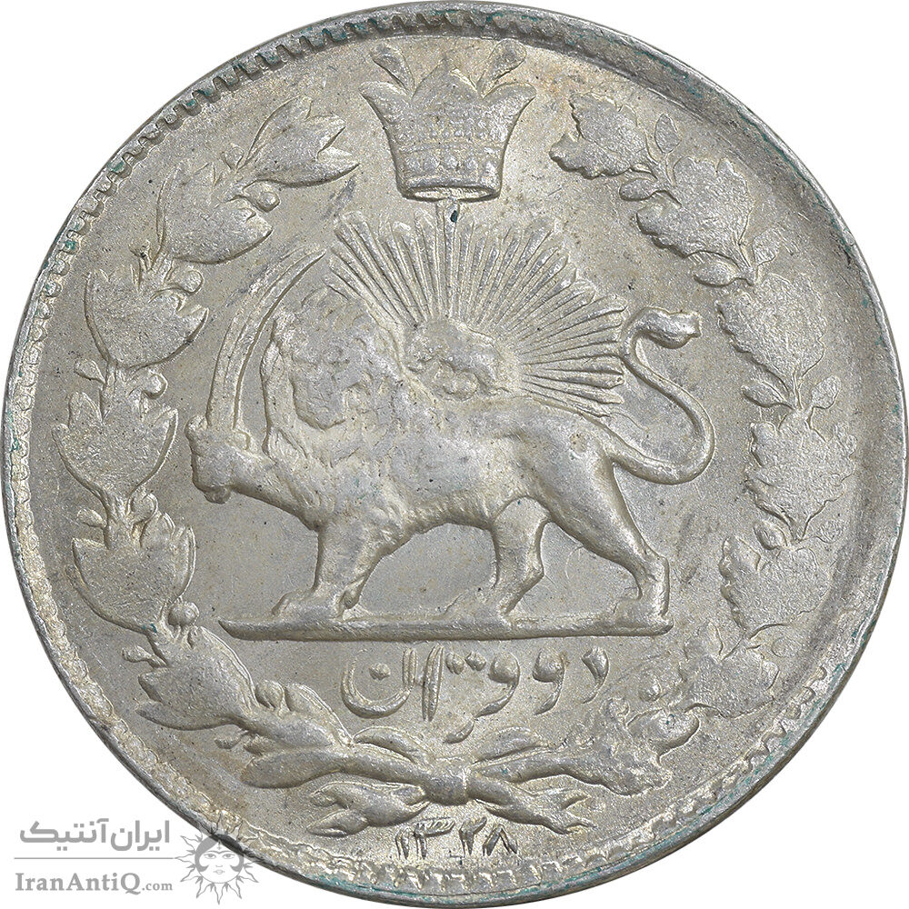 iran 2 krans 1328 coin - double die - MS61 - ahmad shah