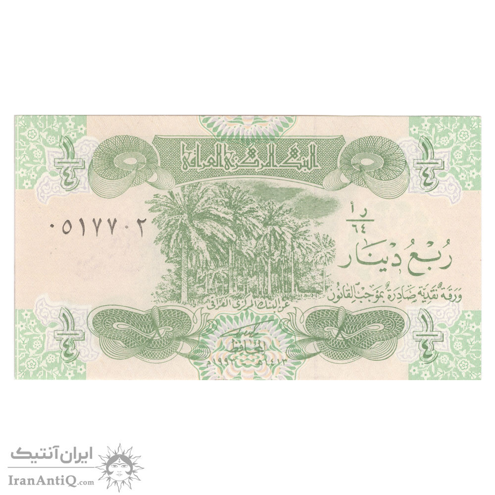 اسکناس 1/4 دینار 1993 جمهوری - تک - AU58 - عراق