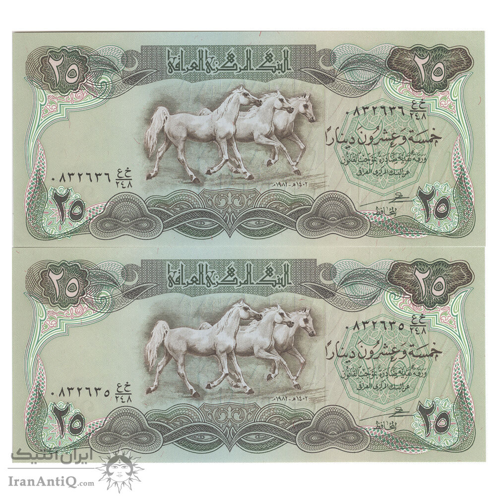 اسکناس 25 دینار 1982 جمهوری - جفت - UNC63 - عراق