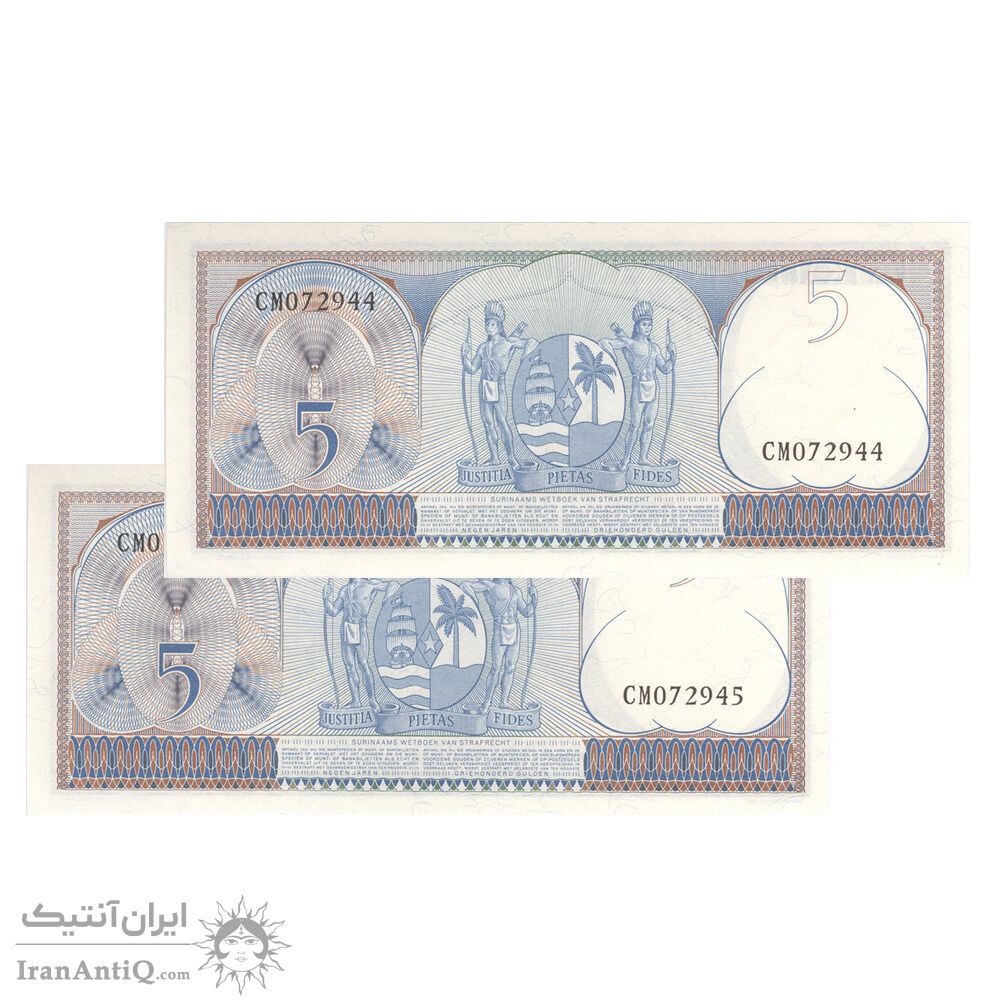 اسکناس 5 گلدن 1963 یولیانا - جفت - UNC65 - سورینام