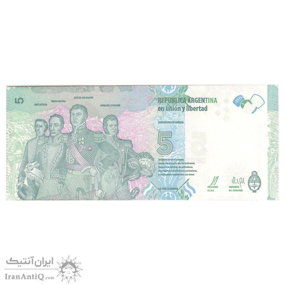 اسکناس 5 پزو بدون تاریخ (2015) جمهوری فدرال - تک - UNC65 - آرژانتین