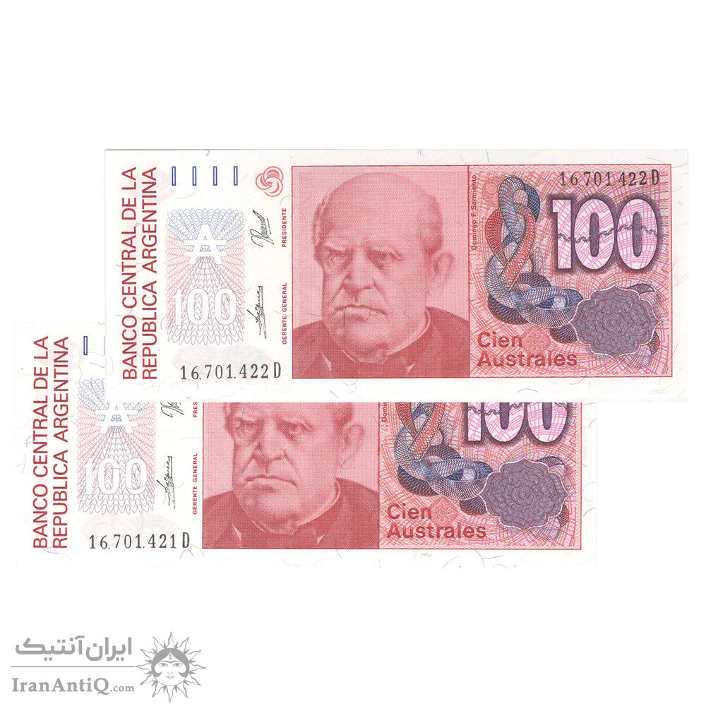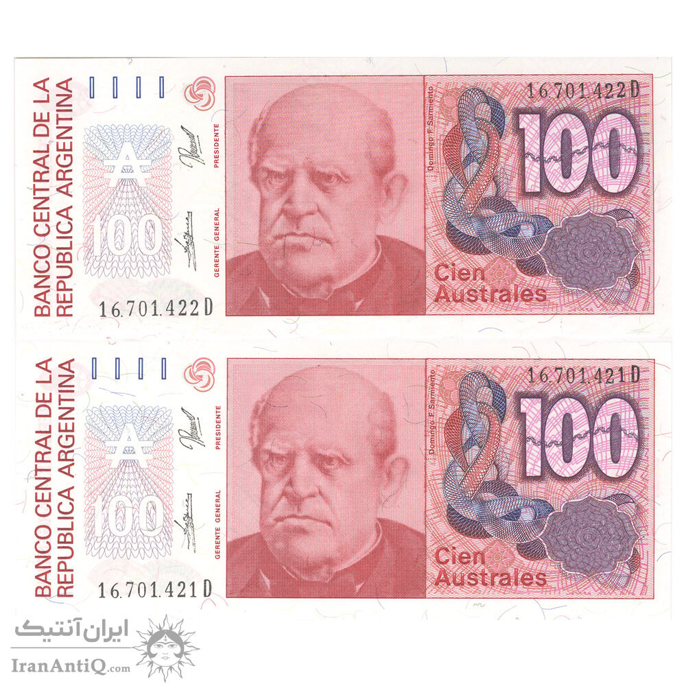 اسکناس 100 آئوسترال بدون تاریخ (1989-1990) جمهوری فدرال - REDP, JGF - جفت - UNC64 - آرژانتین