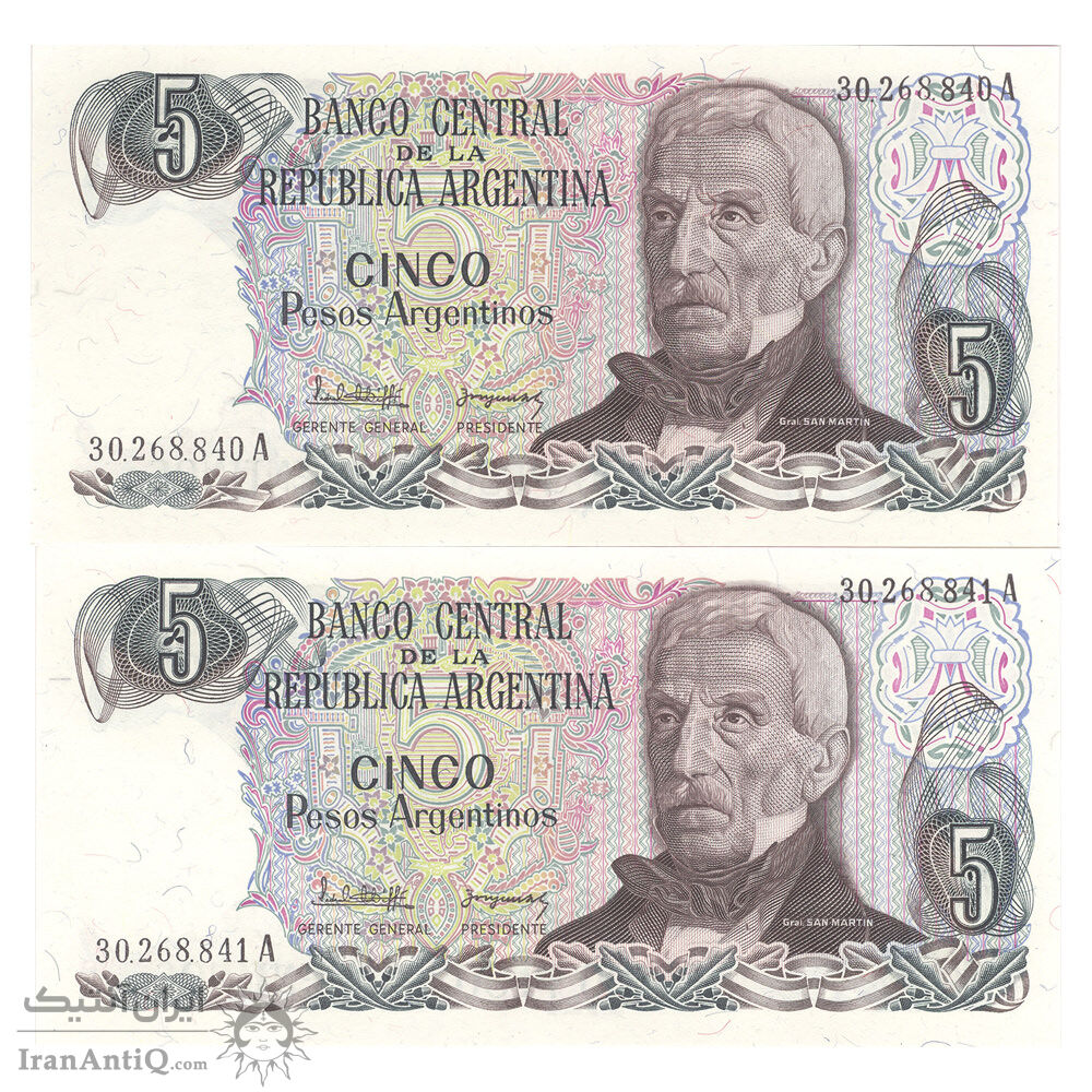 اسکناس 5 پزو بدون تاریخ (1983-1984) جمهوری فدرال - PCL, JCGS - جفت - UNC65 - آرژانتین