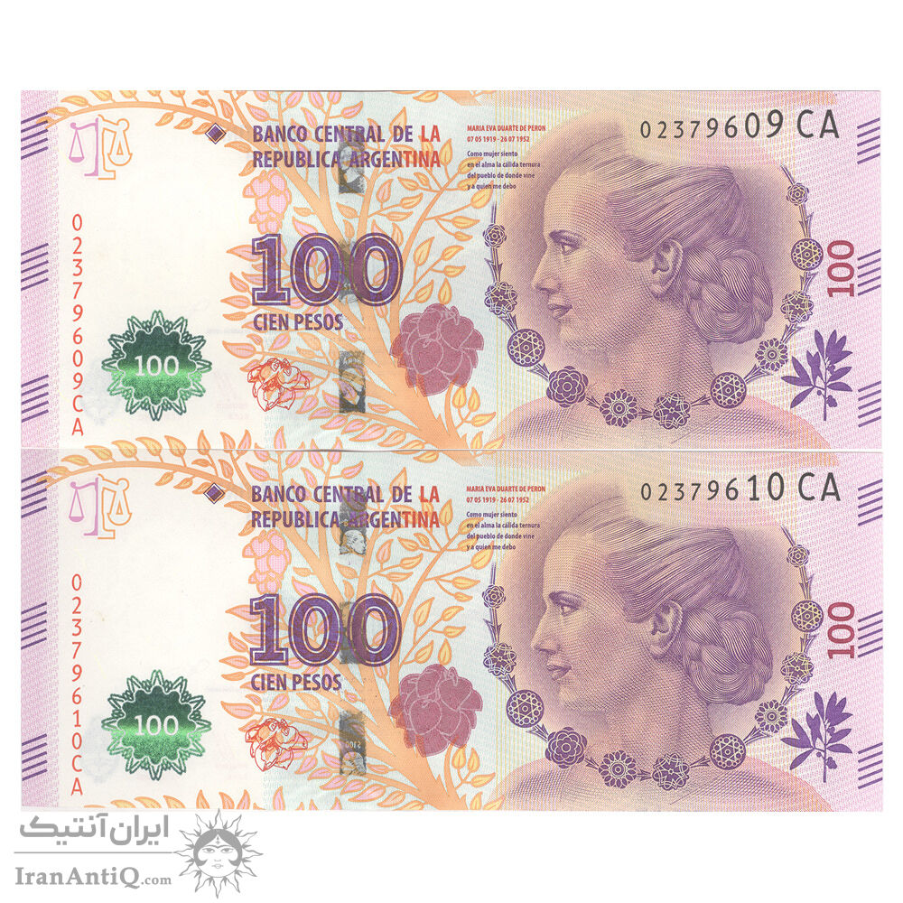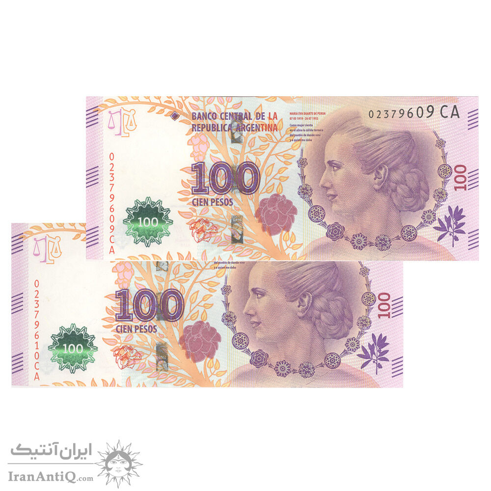 اسکناس 100 پزو بدون تاریخ (2016) جمهوری فدرال - AV, AB - جفت - UNC62 - آرژانتین