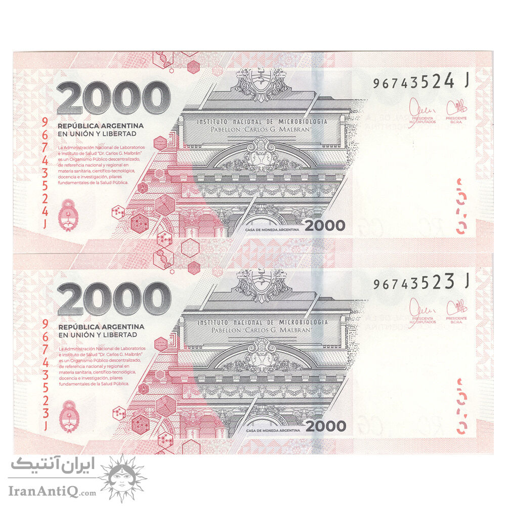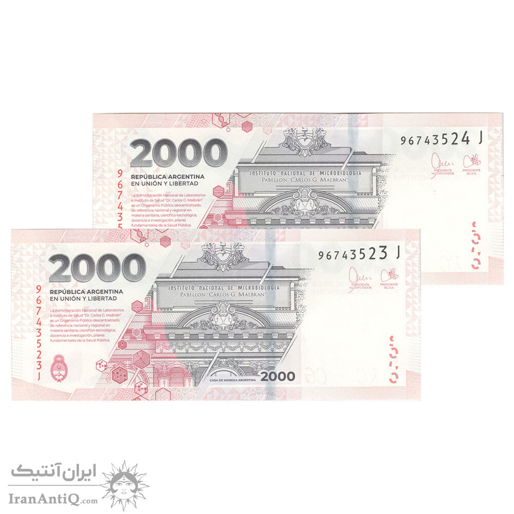 اسکناس 2000 پزو بدون تاریخ (2023-2024) جمهوری فدرال - CM, MAP - جفت - UNC62 - آرژانتین