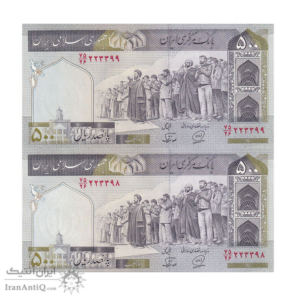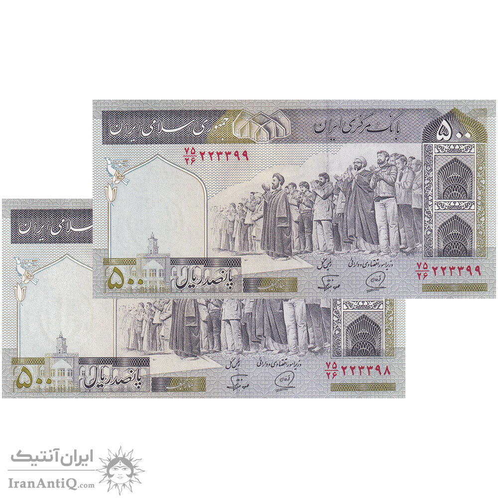 اسکناس 500 ریال (محمدخان - نوربخش) فیلیگران الله - جفت - UNC64 - جمهوری اسلامی