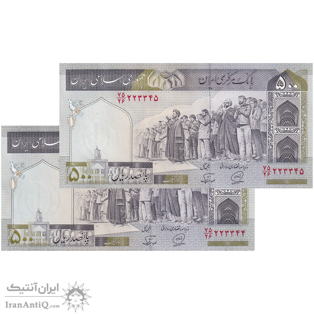 اسکناس 500 ریال (محمدخان - نوربخش) فیلیگران الله - جفت - UNC64 - جمهوری اسلامی