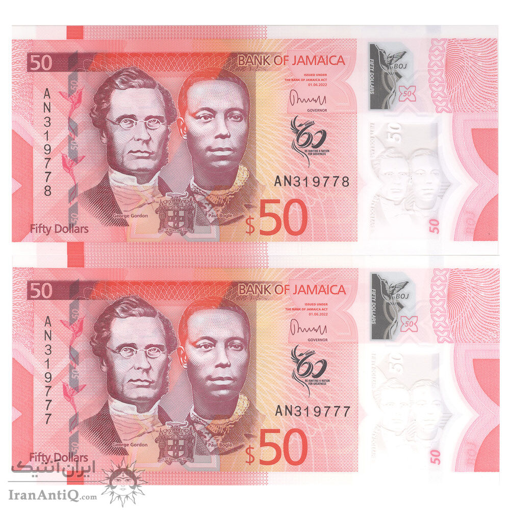 اسکناس 50 دلار 2022 الیزابت دوم - جفت - UNC65 - جامائیکا