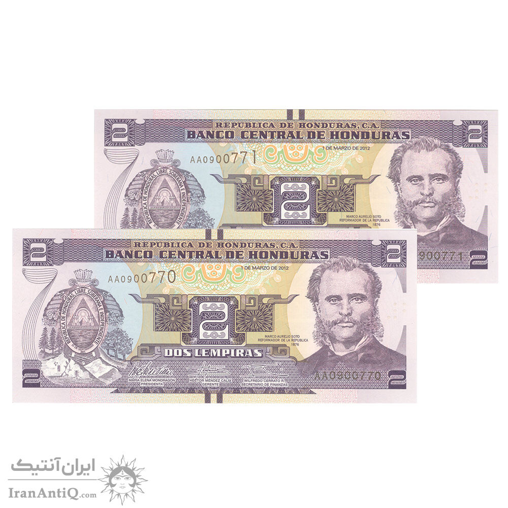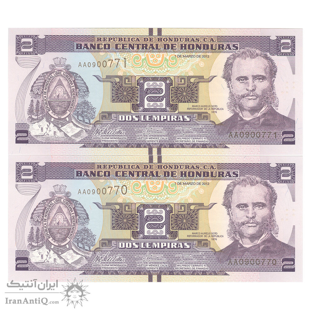 اسکناس 2 لمپیرا 2012 جمهوری - جفت - UNC65 - هندوراس