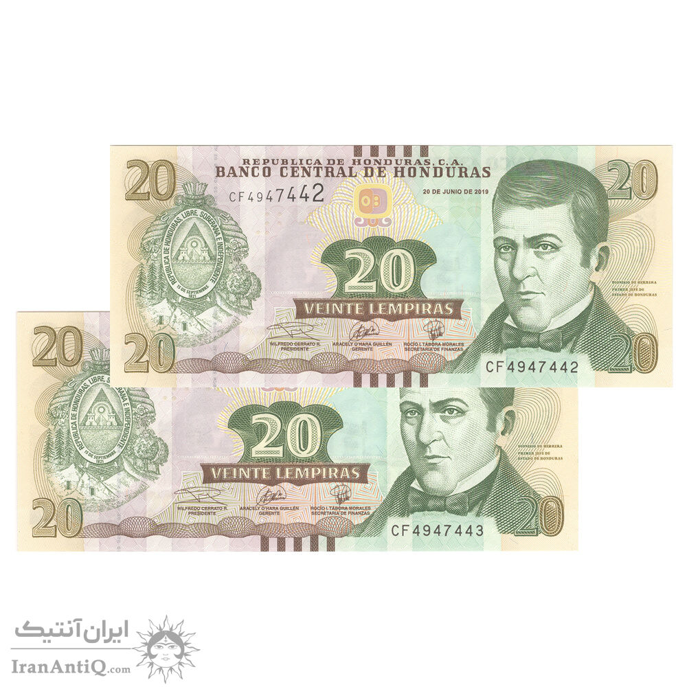 اسکناس 20 لمپیرا 2019 جمهوری - جفت - UNC65 - هندوراس