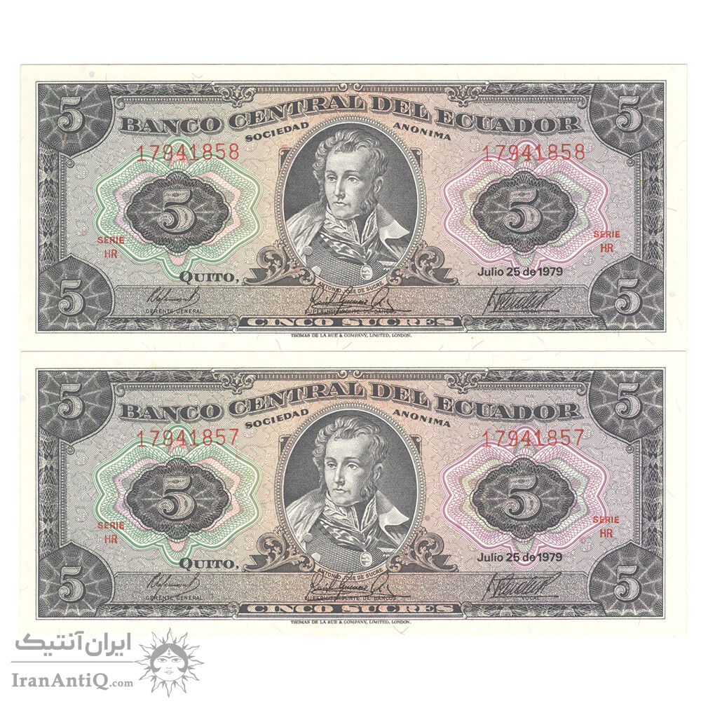 اسکناس 5 ساکرس 1979 جمهوری - جفت - UNC65 - اکوادور