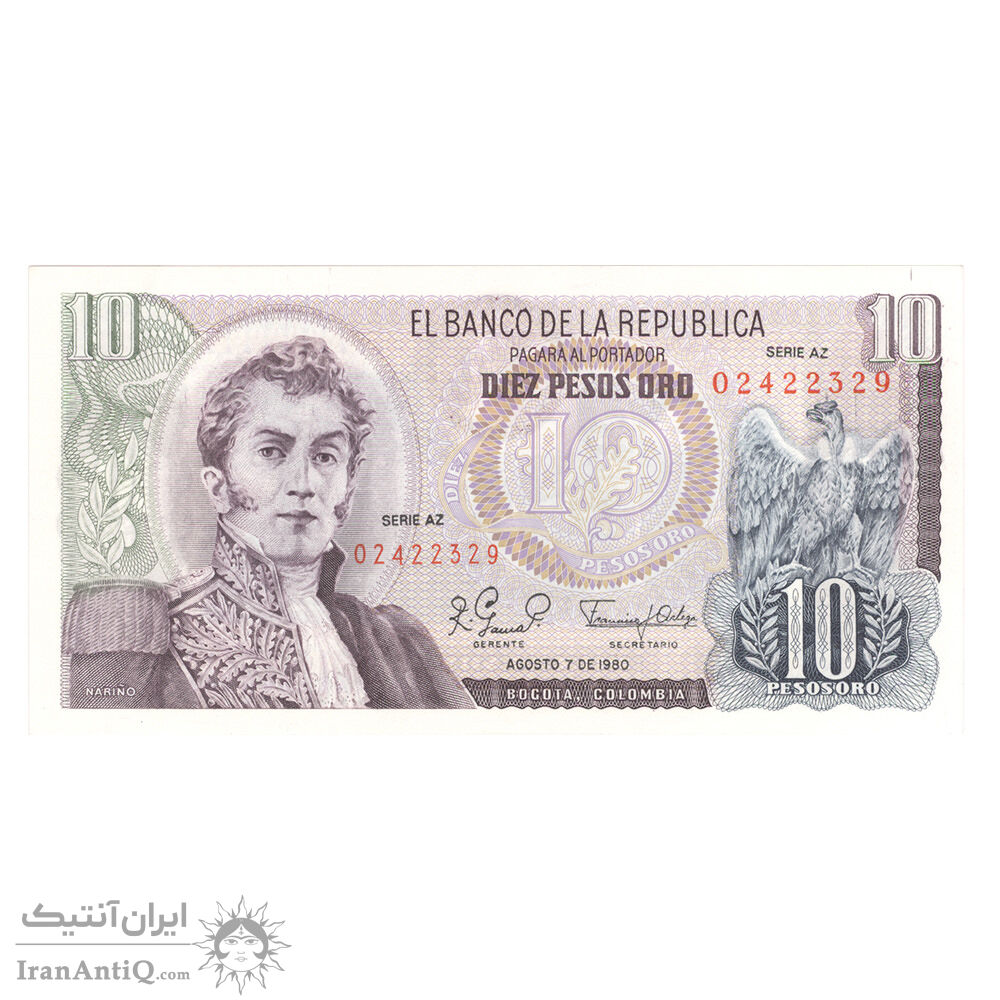 Colombia 10 Pesos Oro 1980 banknote - Serie AZ - UNC64 - Republic