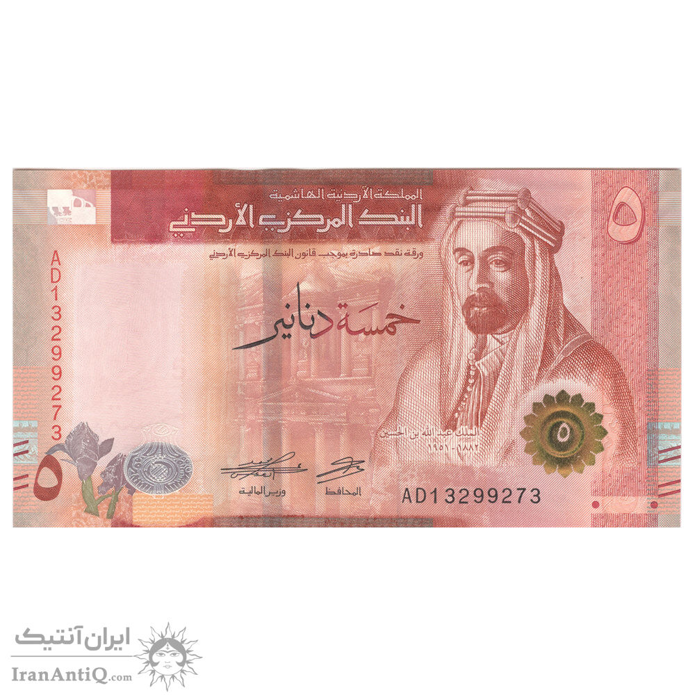 اسکناس 5 دینار 2022 عبدالله بن حسین دوم - تک - UNC63 - اردن