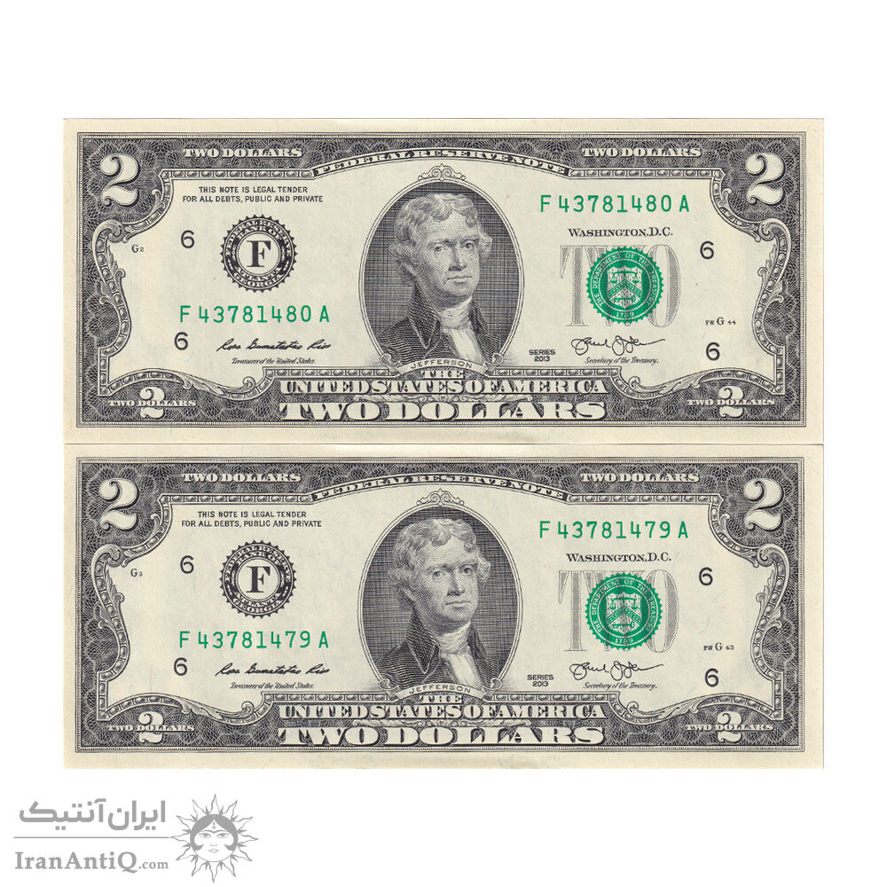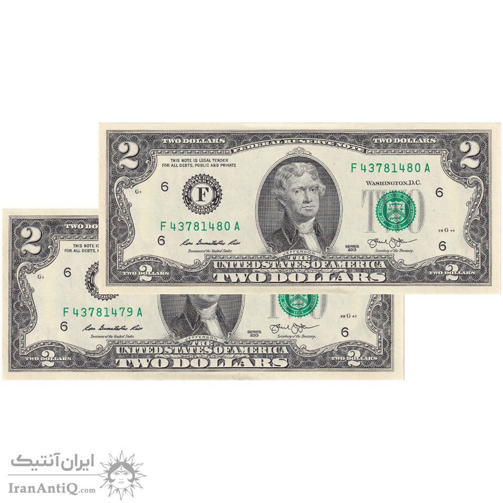 اسکناس 2 دلار 2013 جمهوری فدرال - F (آتلانتا) - جفت - UNC62 - آمریکا